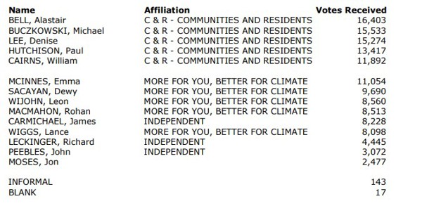 The voter return was 9.64%, being 29,750 voting papers.