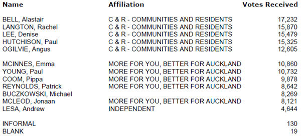 The voter return was 9.39%, being 30,342 voting papers.